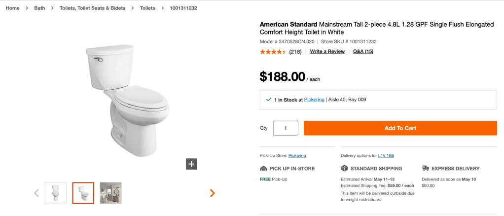 Within budget. Please visit Homedepot for detail